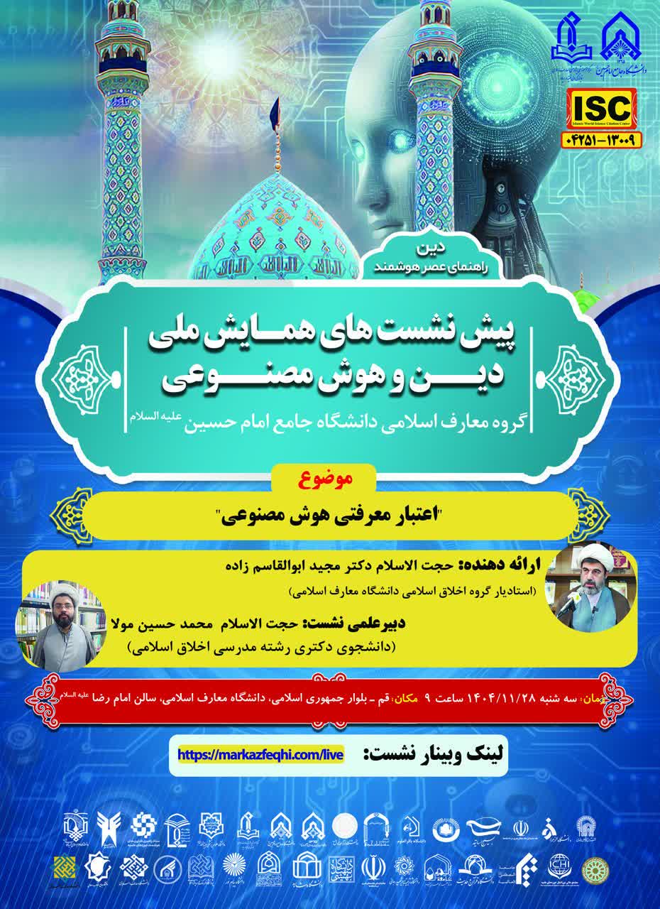 بهمن ۲۷, ۱۴۰۴دبیرخانه اولین همایش ملی دین و هوش مصنوعی در دانشگاه جامع امام حسین علیهالسلام با همکاری دانشگاه معارف اسلامی دومین پیشنشست همایش ملی دین و هوش مصنوعی را برگزار میکند: